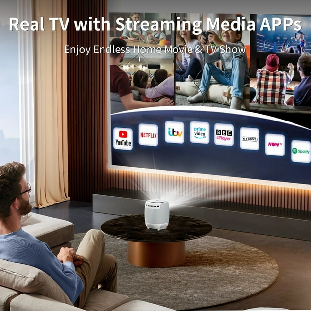 【Built-in Android System】You can downloaded the video apps like Youtube, Netflix, Disney+, or other News, Sports, gaming apps inside our H9 portable projector, then watch your favorite Movies, Sports or News easily by the projector itself instead of connecting kinds of extra complicated and expensive adapters.