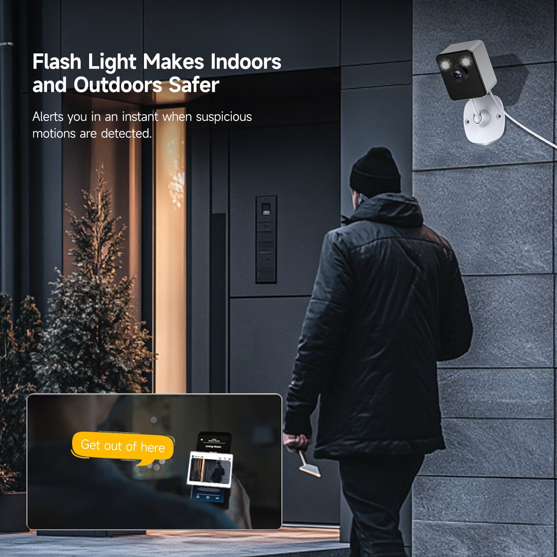 【Two-Way Audio with Real Time Alerts】Instantly connect with family members using the two-way intercom feature. Receive real-time push notifications on your phone app whenever motion is detected, allowing you to choose the Sound or Light Alert option to deter intruders.