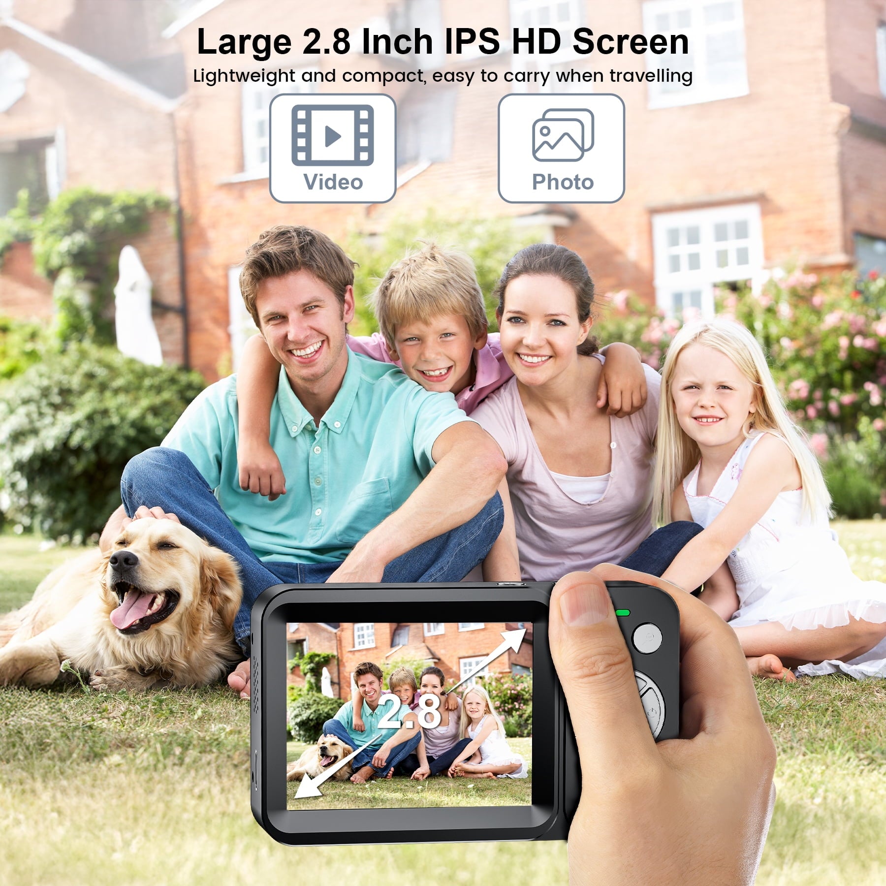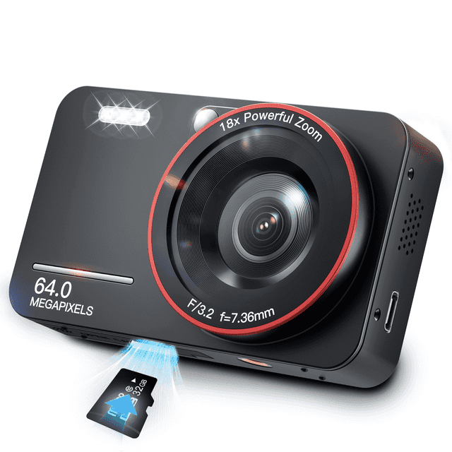- 【FHD 4K 64MP Camera with 32GB SD Card】The digital camera takes clear 64MP photos and 4K videos. It features a large 2.8 inch display for easy viewing and includes a 32GB SD card, providing plenty of space to save all their favorite moments.