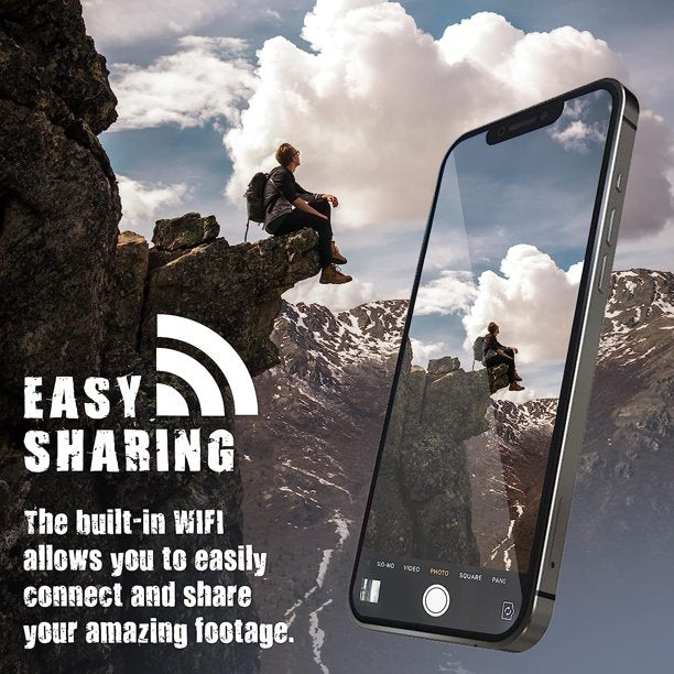 - 【Built-in WiFi & HDMI】Simply download the app on your phone or tablet and connect to this action camera. WiFi connectivity over 8 to 15 metres outdoors, you can connect to smart devices without wires.