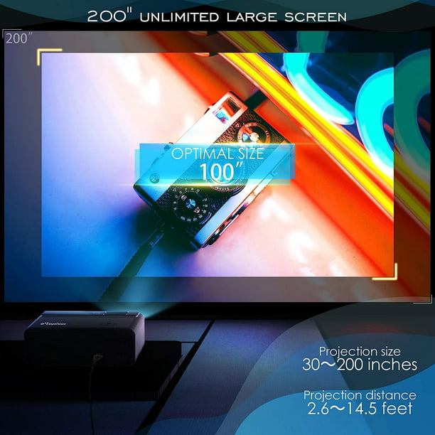 - Ultimate Visual Experience :Ā Excellent performance of the mini HD movie projector based on the powerful parameters.Full HD 1080P input and 24-bit true-color support, and 200" screen. Brilliant big-screen visual experience accessible.