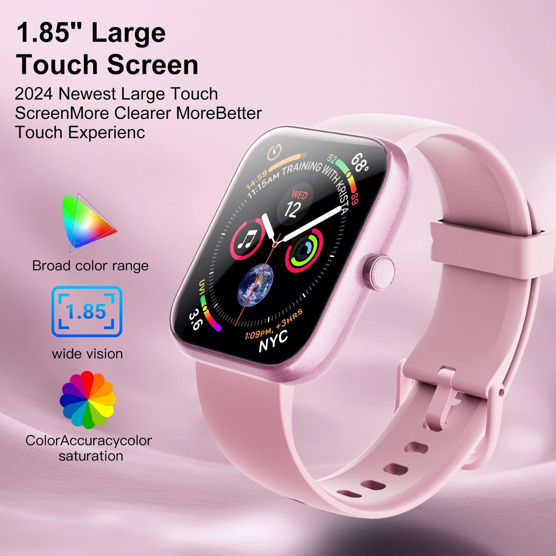 STA Smart Watch, 1.95"HD Smart Watch for Man Women,180 Sport Modes, Fitness Activity Tracker, IP68 Waterproof, Smart Watch for Android iOS (pink)