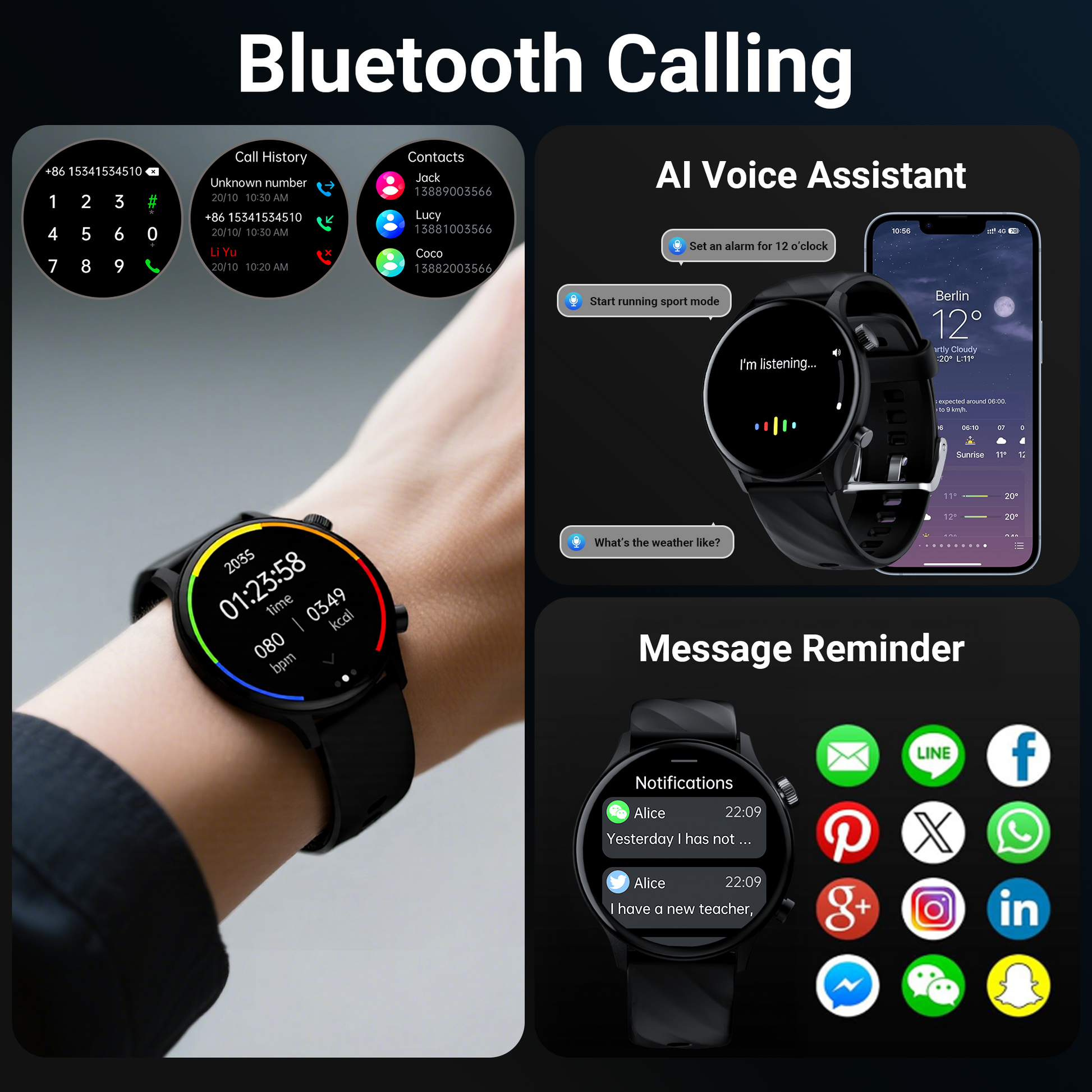 - 【Bluetooth 5.3 Call and Message Reminder】 The STA CX3 Smart Watch for men women is equipped with a built-in microphone and HD speaker, you can easily make and answer calls directly on your smart watch without taking out your phone, The mens smart watch can also receive notifications from apps such as Facebook, Whatsapp, Instagram, SMS, etc. Just raise your wrist to view messages.