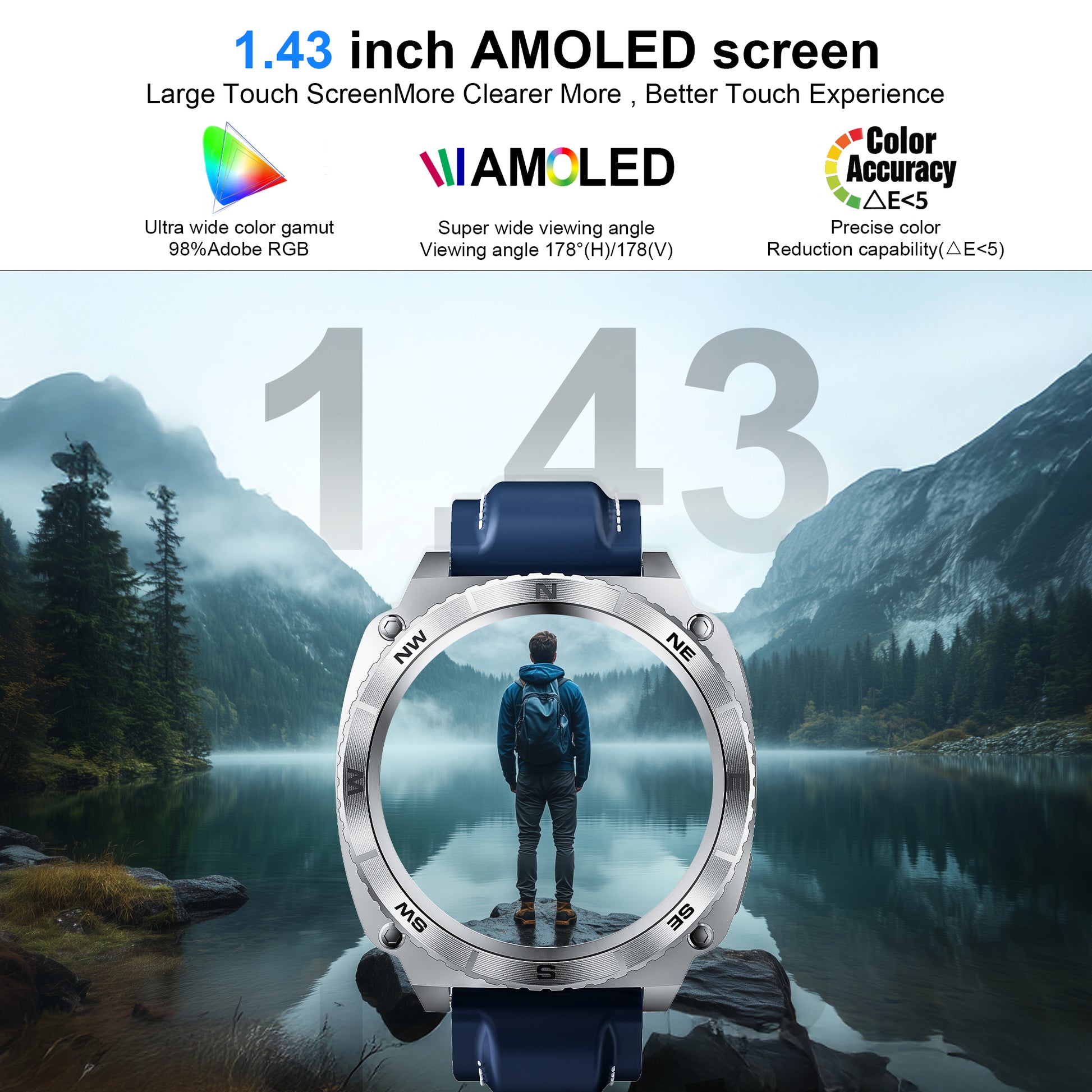 - 【1.43" HD Color Screen and 200+ DIY Dial】The STA Smart watches for men women features a 1.45-inch TFT color screen and 3D curved tempered glass. Manually adjust the brightness so that you can clearly view the displayed time and exercise data even in direct sunlight. You can also choose from more than 100 online watch faces in the "Runmefi" APP or upload photos as smart watch backgrounds.