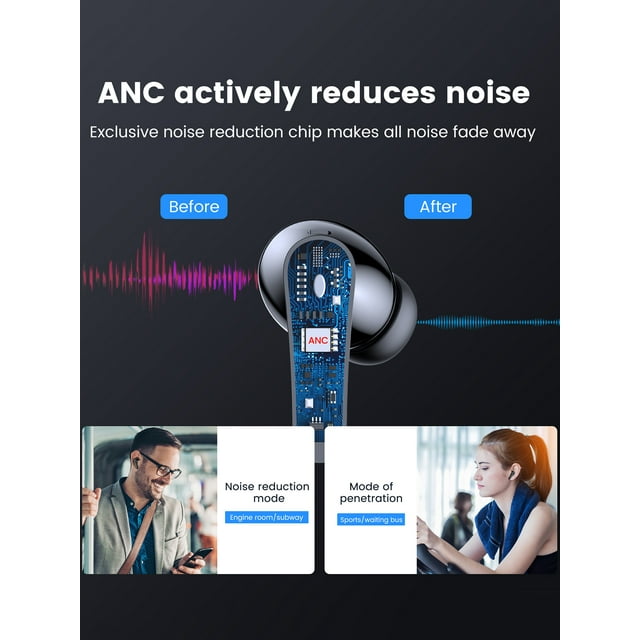 【Active Noise Cancellation】Headphones have excellent sound quality and powerful noise reduction function, built-in 4 microphones, which can continuously monitor low-frequency noise in the environment, calculate the equivalent anti-noise output, and reduce unwanted noise to a comfortable level. Switch to ANC mode to bring you to a quieter environment and listen to a more immersive music experience.